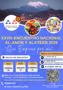 ¡Te invitamos al XVIII Encuentro Nacional de Grupos de Familia Al-Anon y Alateen Bolivia 2026!